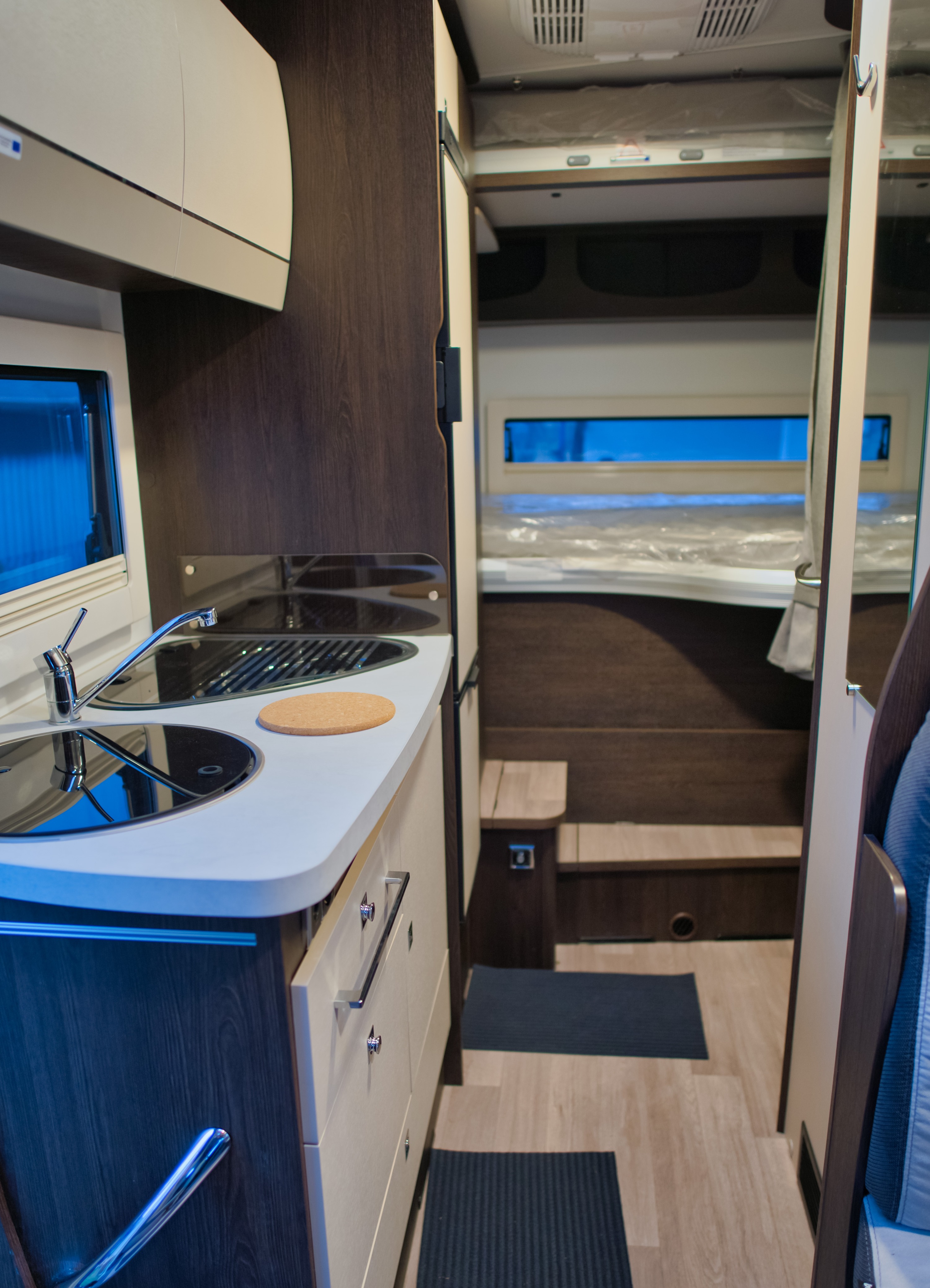 - Ogrzewanie zbiornika wody szarej – możliwość użytkowania kampera zimą