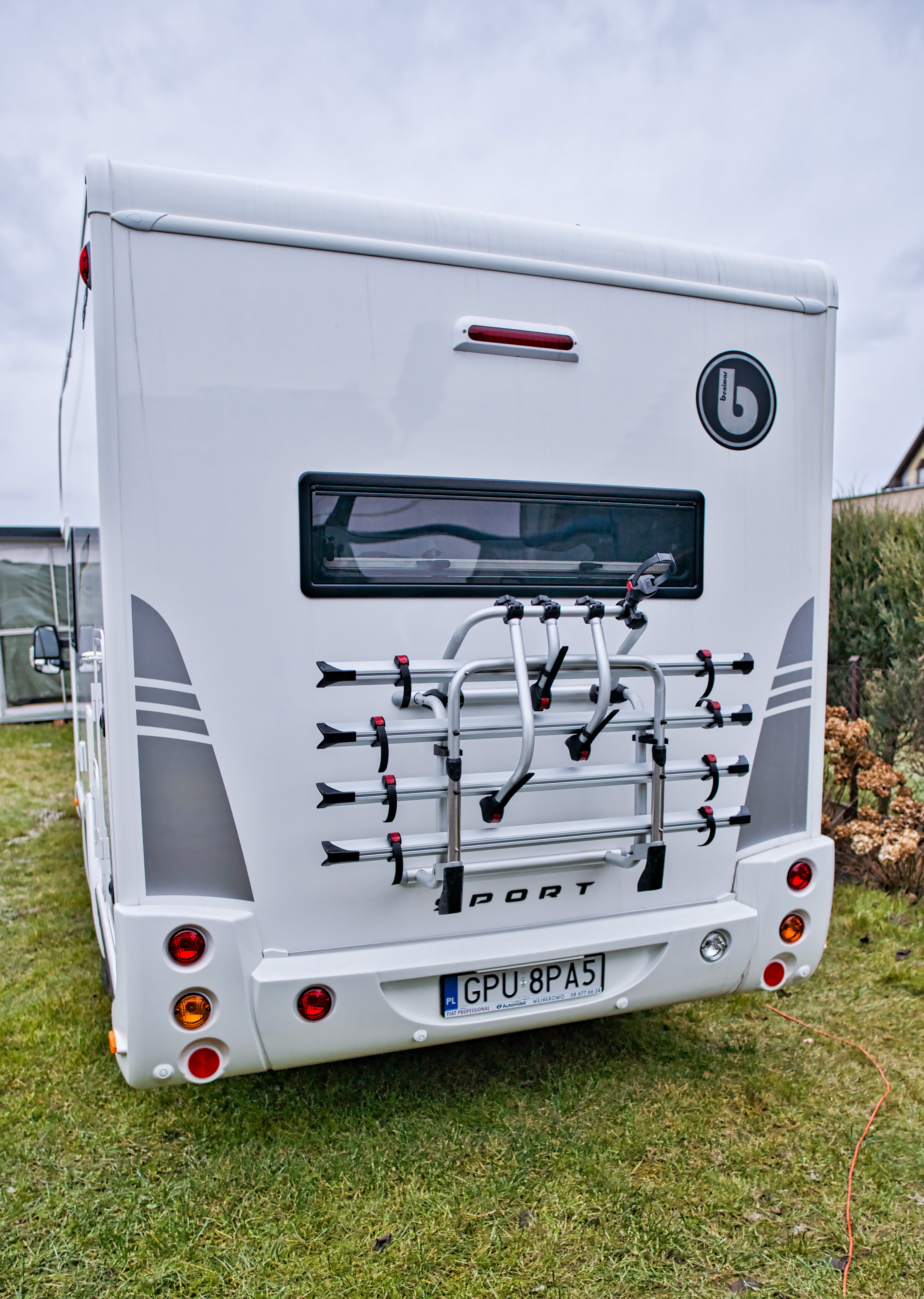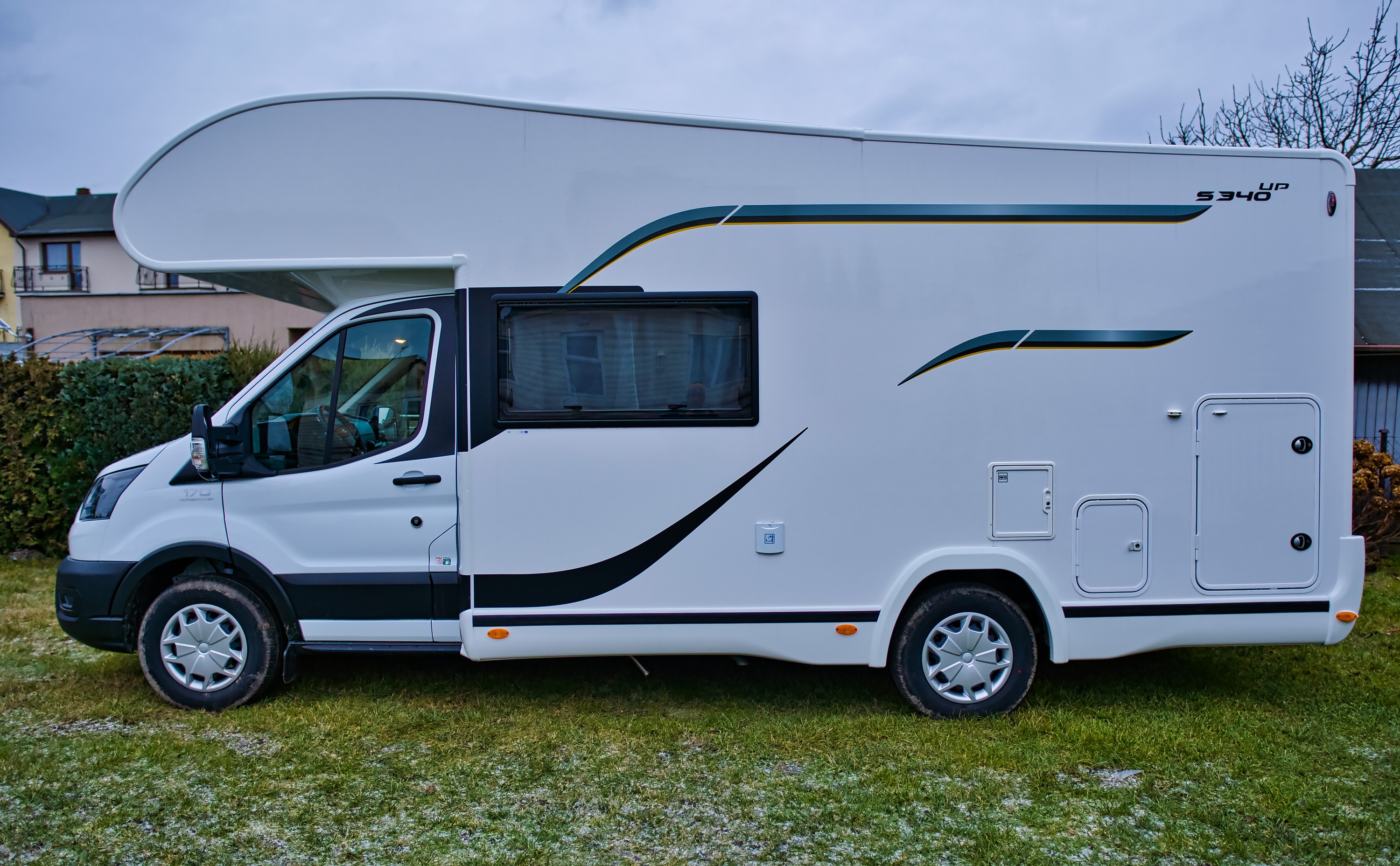 - Zestaw podróżny: kliny poziomujące, przyłącze prądowe, wąż do wody, trójkąt ostrzegawczy, gaśnica, płyn do toalety